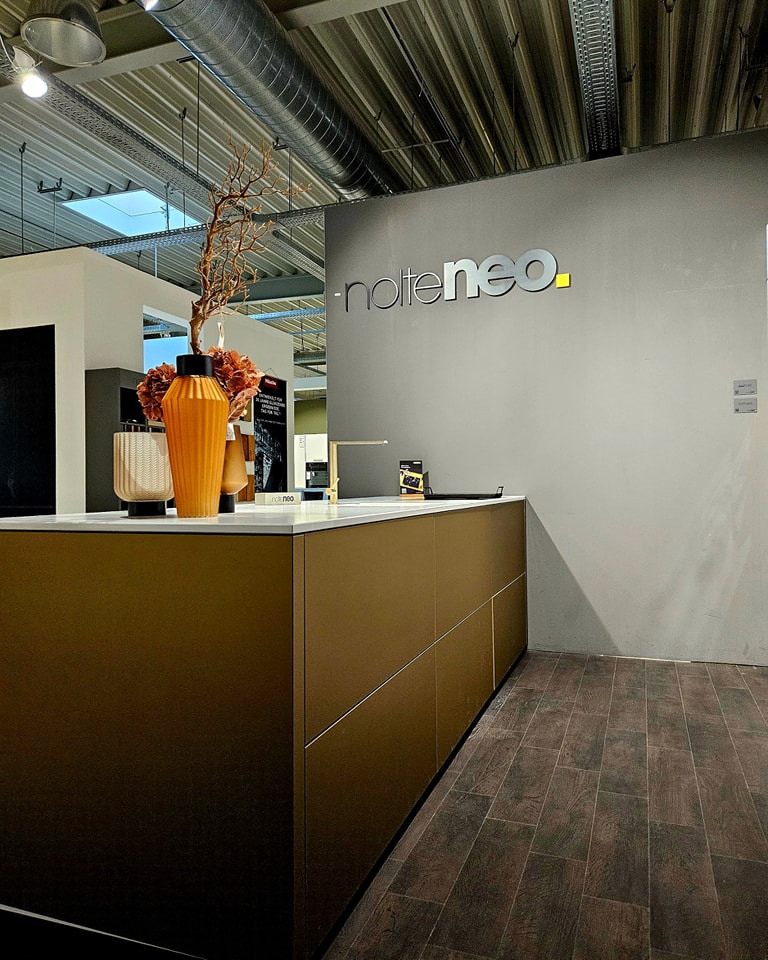 Wir bieten Ihnen die auf den Bildern dargestellte exklusive, hochwertige Ausstellungsküche der Firma Nolte neo an.